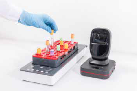 Samples scanned and stored in iRacks at collection sites; upon arrival, racks are placed in Indexor for instant LIS check-in and accessioning