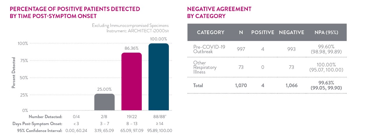 | 华盛顿大学在《临床微生物学杂志》上发表的研究发现,在自症状开始出现已过 17 天的人群中,我们的 SARS-CoV-2 冠状病毒 IgG 测定检测 IgG 抗体的特异性达 99.9%,灵敏度达 100%。 |